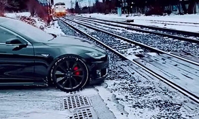 Sur cette vidéo filmée aux États-Unis, une voiture Tesla se fait écraser et rouler dessus par un train de marchandise en franchissant un passage à niveau. Un conducteur prudent a voulu forcer le passage à niveau et va vi...