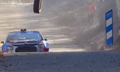 Lors de la dixième étape du Rallye Monte-Carlo, le pilote français Stéphane Lefebvre a perdu une roue en percutant un mur. Il a alors terminé la spéciale sur trois roues comme le montre cette vidéo ou le pilote engagé en...