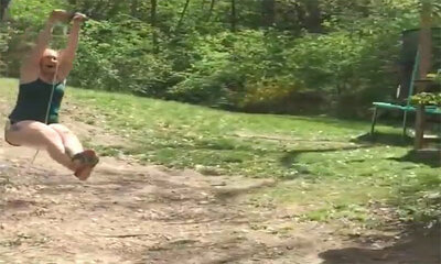 Dans le jardin d'une propriété familiale, une famille a fait installer une tyrolienne dans le jardin. C'est alors que la mère de famille a voulu retrouver sa jeunesse en essayant cette tyrolienne. Mais comme toujours cel...