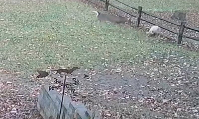 Ce lundi 22 novembre 2021 à Charlotte, en Caroline du Nord, aux États-Unis, un chien aboie sur une biche dans un jardin avant d'être attaqué par un cerf. Heureusement, sa maîtresse est intervenue avec une serviette pour ...