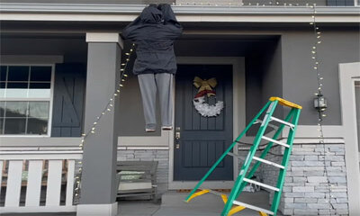 Aux États-Unis, le magicien Rich Ferguson s’amuse à faire une blague à ses voisins en installant une décoration de Noël sur son toit. Il s'agit en fait d’un mannequin qui se retrouve suspendu à la gouttière, donnant l'il...
