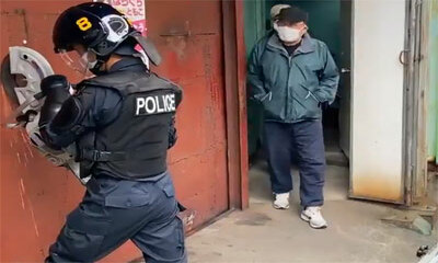 A Tokyo, au Japon, la police a lancé une grande opération avec 100 policiers pour perquisitionner le QG de militants d’extrême gauche. Dans cette vidéo, plusieurs agents de police ont sorti leurs gros engins face au camé...