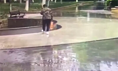 Dans une ville en Chine, un homme marche avec son téléphone à la main et à les yeux rivés sur son téléphone. Et forcément, cette pratique est toujours aussi dangereuse et monsieur finit par tomber dans le bassin d'un par...