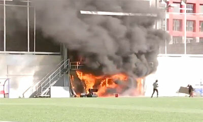 Un incendie s’est déclaré ce vendredi après-midi au stade national d'Andorre, quelques heures après leur entraînement sur la pelouse en direct. L’incendie a été filmé en direct durant un JT sportif ou le présentateur ang...