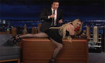 Lors d'une interview sur le plateau de Jimmy Fallon, dans The Tonight Show, Madonna, l'artiste aux 300 millions d'albums vendus s'est mise à ramper sur le bureau du présentateur. Âgée de 63 ans, Madonna semble avoir gonf...