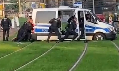 Nous ne savons malheureusement pas comment les forces de l’ordre Allemandes se sont débrouillées pour se retrouver dans une telle situation. Mais, dans cette vidéo, on peut voir une dizaine de policiers en pleine galère ...