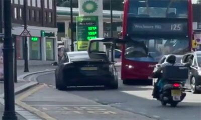 Le génie de l’année 2021 ? A Londres ce dimanche 15 aout 2021, un conducteur au volant de sa Tesla Model X a oublié de fermer sa porte Falcon (ou porte papillon). Et au bout de quelques mètres, la portière a heurté viole...