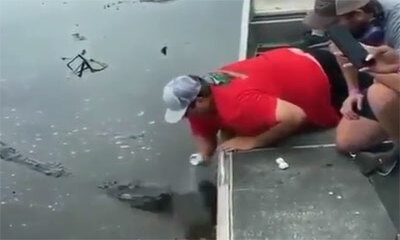 Yihaaa ! Les américains ont trop le style que jamais nous français pourront avoir. En même temps, il est difficile pour nous de trouver des alligators en liberté. Bref, en Floride, un pêcheur ouvre une bière avec les den...