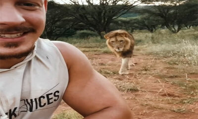 Le Suisse Dean Schneider et star d’Instagram avec 9 millions de followers vit dans le refuge animalier Hakuna Mipaka qu'il a fondé en Afrique du Sud. Dans cette vidéo, il s'amuse à tourner le dos à un lion. Sur ces image...