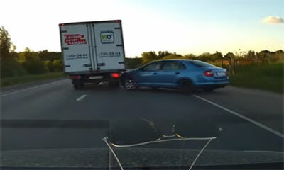 A Mytishchi en Russie, une femme au volant a tenté de faire un demi-tour sur une route en forçant une priorité. Elle va alors couper la route à un camion et venir provoquer un accident. Pire, cette cruche va rester plant...
