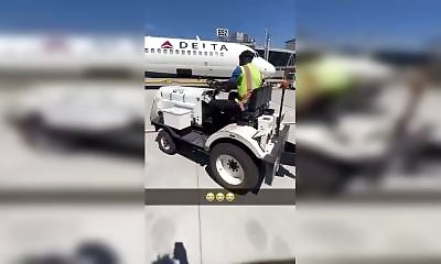Sur un aéroport, un employé profite d'un petit véhicule utilisé pour remorquer les avions, pour jouer les pilotes de course. Devant ses collègues, il accélère et tente de faire le malin au volant. Mais la démonstration n...