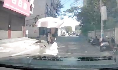 En Chine, une conductrice de scooter a été filmée en train de rouler tout en tenant une ombrelle pour se protéger du soleil. Le problème, c’est que l’objet lui bloque la vue et elle finit par percuter de plein fouet un a...