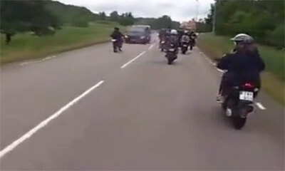 Ou alors c'est le contraire ! Aux Pays-Bas, un groupe de motard monopolise une route de campagne lorsque qu'il croise un véhicule. Mais un motard qui circule en sens inverse viens alors se retrouver face au véhicule. Pro...