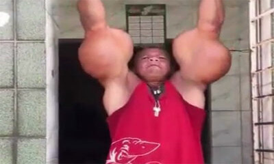 Au Brésil, un Go Muscu avec des bras et surtout des biceps surdimensionnés se lance dans une série de tractions assez difficile. On peut alors voir des bras et des trapèzes difformes bourrés de Synthol qu’il exhibe fière...