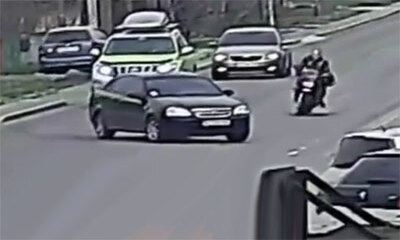 En Russie, un motard double une longue file de circulation mais se retrouve sur la voie d’en face. C’est alors qu’un automobiliste tourne sur sa gauche sans regarder les rétroviseurs. Le motard paniqué tente alors un fre...