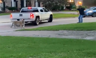 Un tigre a été aperçu en liberté dans un quartier de Houston ce dimanche soir aux Etats-Unis. Un homme était également à l’extérieur et pointait une arme à feu sur l'animal sauvage. Le félin avec un collier se promenait ...