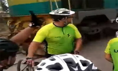 Lors d’une sortie à vélo, un groupe de cycliste se retrouvent devant une voie ferrée et un passage à niveau. L’un des sportifs du dimanche ne va pas faire attention à sa positon et va laisser la roue arrière de son véhic...