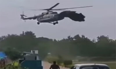 Lors de l'atterrissage d'un hélicoptère, une énorme bâche en plastique vient heurter les pales de l’appareil. Mais sous la puissance, la bâche va complètement être détruite obligeant toutefois le pilote à prendre des pré...
