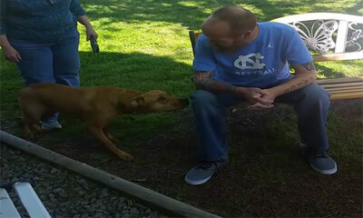 Aux États-Unis, homme a du être hospitalisé pendant 5 semaines à l’hôpital pour une grosse opération. Bilan, il est ressorti changé et est revenu à la maison avec 30 kg en moins. Le chien qui assez confus, au départ a mi...