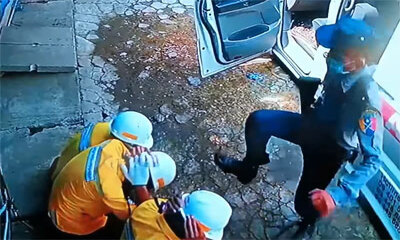 Des images de vidéosurveillance montrent la police birmane frapper des secouristes venus porter assistance aux manifestants contre le coup d’État militaire du mercredi 3 mars 2021. Sur ces images filmées à Rangoon, on pe...