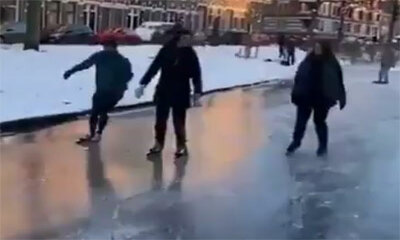 Amsterdam connait une vague de froid assez importante et les canaux de la ville sont tous gelés. Cela a donné des idées aux habitants qui ont voulu s’essayer aux patins aux glaces. Mais alors qu’un jeune homme patine sur...