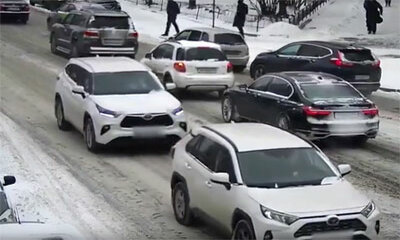 En Russie, une femme qui circule sur une route enneigée ne garde pas ses distances de sécurité. Elle vient alors percuter un véhicule par l’arrière. Après quelques échanges avec l’autre automobiliste, elle remonte dans s...