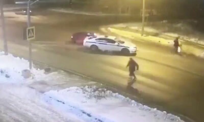 Une voiture de police de la ville de Tcherepovets, en Russie, est intervenue en faisant barrage avec leur véhicule pour stopper un chauffard afin qu’il ne percute pas des piétons qui traversent la route. Le conducteur du...
