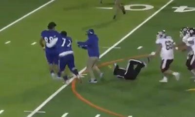 Le joueur de ligne défensif des Bobcats d’Edinburg au Texas, Emmanuel Duron, a agressé un arbitre après avoir été expulsé du terrain pour un geste antisportive. Il est retourné sur le terrain pour venir mettre l’arbitre ...