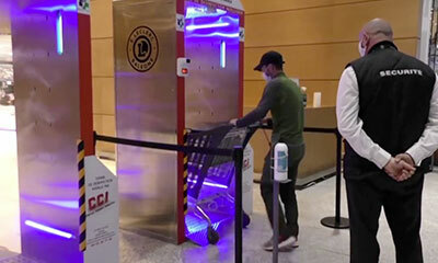 Ce lundi 9 novembre 2020, l'hypermarché Leclerc de Baléone, à Ajaccio, en Corse, a placé des tunnels ou sas de désinfection afin de lutter contre le coronavirus. Chaque clients doit faire une prise de température avec un...