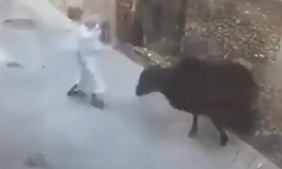 En Inde, un homme dans une rue frappe un taureau avec un bâton. Pourquoi ? Je ne sais pas, mais l’animal va se venger en chargeant son agresseur. Il va être violemment attaqué et projeté contre un mur.