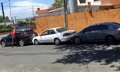 A Saint-Domingue République dominicaine, deux voitures bloquent une voiture blanche dans une rue. Pourquoi ? Car cette dernière a percuté l'un des véhicules avant de prendre la fuite. Bloqué, le conducteur sort de sa voi...