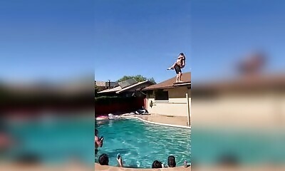 Un mec tient une fille dans ses bras. Ils sont sur un toit. Il saute avec elle, direct dans une piscine. En plein vol, on voit clairement que la fille relâche un bras. Si elle avait complètement lâché, elle aurait pu tom...