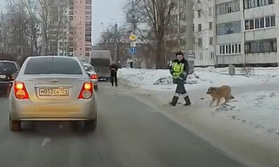 En Russie, le piéton n’a pas beaucoup de place sur la route. Pire, il semble être inexistante aux yeux des conducteurs. Alors, imaginez un pauvre chien qui souhaite traverser la route pour se rendre à son rencard. Par ch...