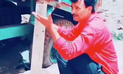 Une technique facile et un peu dangereuse pour débloquer ce camion benne. En Inde, un homme se sert d’une planche de bois pour débloquer un camion à benne dont une roue arrière est prise au piège dans un trou. Il place l...