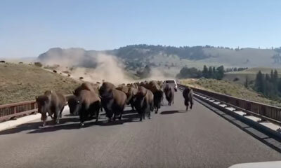 Ben, tu fais moins le malin ! Dans cette vidéo, on peut voir un troupeau de bisons faire irruption sur le pont de la Lamar Valley dans le parc de Yellowstone, aux États-Unis. Face à cette immense troupeau, tous les autom...