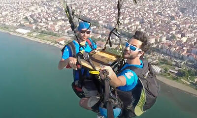 Deux hommes ont réunis leurs deux passions : le backgammon et le parapente. Kadir Mert et son ami se filme durant un vol au-dessus de la mer Noire à Alt?nordu, en Turquie. Mais il profite de la quiétude des lieux pour se...
