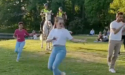 Un instant de vie filmé au Zuiderpark de La Haye aux Pays-Bas. Alors qu’une femme organisait un cours de Salsa ce mercredi 20 mai, deux femmes policières à cheval se sont invitées pour tenter de danser avec leurs monture...