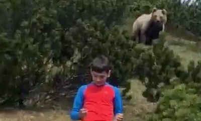 Durant une promenade en montagne non loin de Sporminore en Italie, un ours a surgi derrière un enfant. Face au danger, le père a demandé à son enfant de garder son calme et de revenir le rejoindre sans crier ou courir. L...
