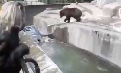 Au Zoo de Varsovie en Pologne, un homme ivre âgé de 23 a pénétré l'enceinte des ours ou se trouvait l'ours Sabina. Ce dernier assez âgé à été sauvé d'un cirque après avoir été maltraité. Face au fauve, l’homme saute dans...