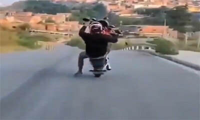 Sur une route en Amérique du Sud, régis fait le beau devant ses amis. Il tente alors de faire un wheelie et commence par rouler tranquillement lorsqu’il perd le contrôle et vient tomber. Mais durant sa chute, il vient he...