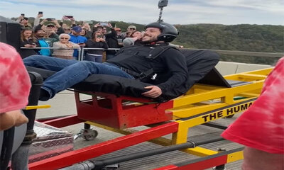 Le Slingshot est un manège terrifiant ou les passagers sont catapultés dans le airs à la façon d’Angry Bird. Un couple a décidé de grimper dans ce manège et madame qui possède une bonne paire de seins va nous montrer l'u...