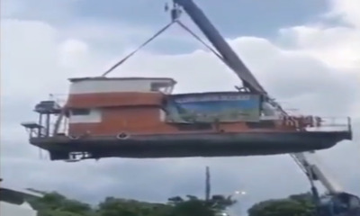 En Indonésie, des ouvriers et marins ont craint pour leur vies lorsque leur barge qui transporte du sable a montré des signes de faiblesse. Cette dernière a commencé par céder sous le poids et tous les occupants ont fina...