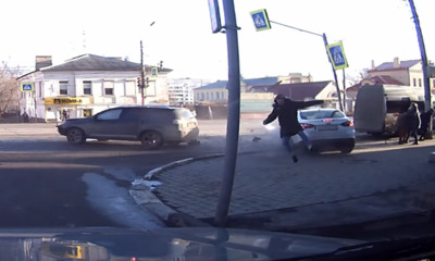 A Tula en Russie, un piéton a bien failli terminer sous les roues d’une voiture. Alors qu’il attend tranquillement sur le trottoir, un automobiliste tente de tourner sur sa gauche et grille la priorité à droite. C’est al...