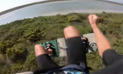 En Australie, un kitesurfeur professionnel s’amuse çà faire un saut à de 140 mètres de long par-dessus un bras de terre. Des images assez impressionnantes filmées avec une caméra embarquée qui nous montre cet exploit. ...