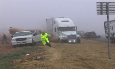 Accident complètement incroyable digne d’un film de Hollywood. A Lubbock County (Texas) sur l’autoroute I-84, un camion voulant éviter des voitures accidentées perd le contrôle de son véhicule. Sur ces images, on peut le...