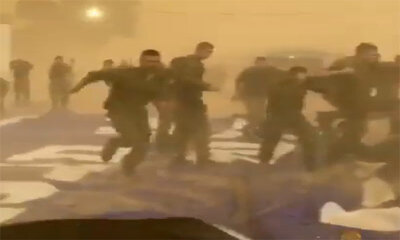 Lors d’une tempête de sable, des militaire se font attaquer par une cabane de chantier. Sur cette vidéo, on peut voir un soldat filmer la tempête et se faire surprendre par cette maison de chantier qui lui fonce droit de...