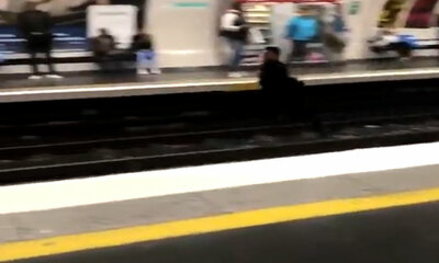 Un resquilleur cours sur les rails du métro parisien. Miromesnil est une station des lignes de métro de Paris, située dans le 8e arrondissement de Paris. Ce lundi 28 octobre 2019, un usager de la ligne a filmé une scène ...