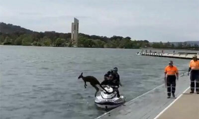 On se rend à Canberra en Australie et plus exactement sur le lac Burley Griffin ou des policiers sont intervenus pour sauver un kangourou tombé à l’eau. Les agents récupèrent l’animal sauvage à bord d’un scooter des mers...