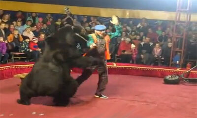 Un ours forcé de se faire le spectacle avec une brouette a attaqué un de ses deux dompteurs, en Russie. A Olonets, dans la république de Carélie, un ours brun de 300 kilos poussait une brouette quand il s’est jeté sur so...