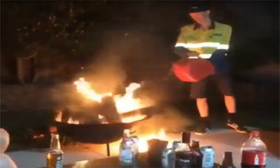 Pour alimenter un feu, Régis se saisit d’un bidon d’essence et commence par verser de l’essence sur le feu. Mais c’est alors que son bidon s’enflamme ou notre ami est pris de suite de panique. Apeuré, il tente d'éteindre...